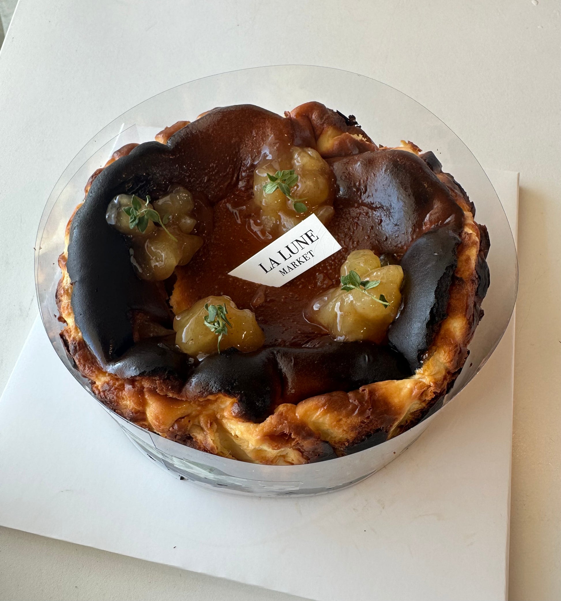 Apple and cinnamon inside and on top of our original basque cheesecake.